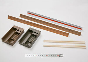 また、竹による抗菌作用も検証機関により実証されています。実用化もされており、芯の部分に竹粉入り樹脂を使用した三角スケールがすでに製造・販売されています。