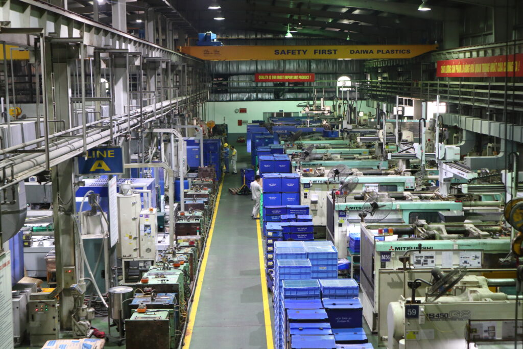 ハノイ工場では、熱可塑性樹脂成形を専門に、電子機器、OA機器、二輪部品、自動車などの大型成形品を生産しています。