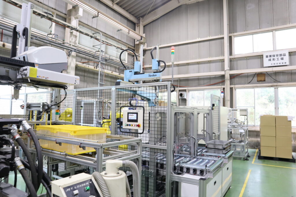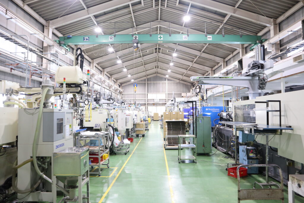 国内の生産拠点として、成形から二次加工、組立、検査まで一貫した生産体制を整えています。熱可塑性樹脂と熱硬化性樹脂の両方を扱い、自動車部品や配線機器部品の精密成形を得意としています。また、自動車の重要保安部品認定工場として高い品質保証体制を有しています。