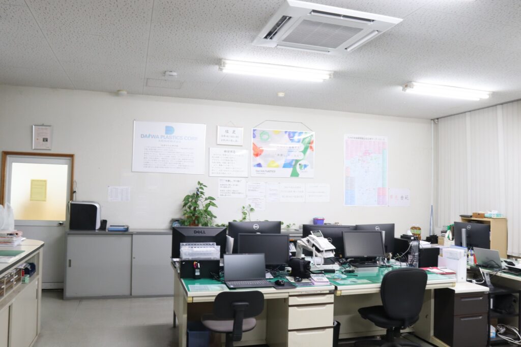 目薬の容器などを生産するため、クラス10万のクリーンルームを完備しており、高品質な生産を実現しています。